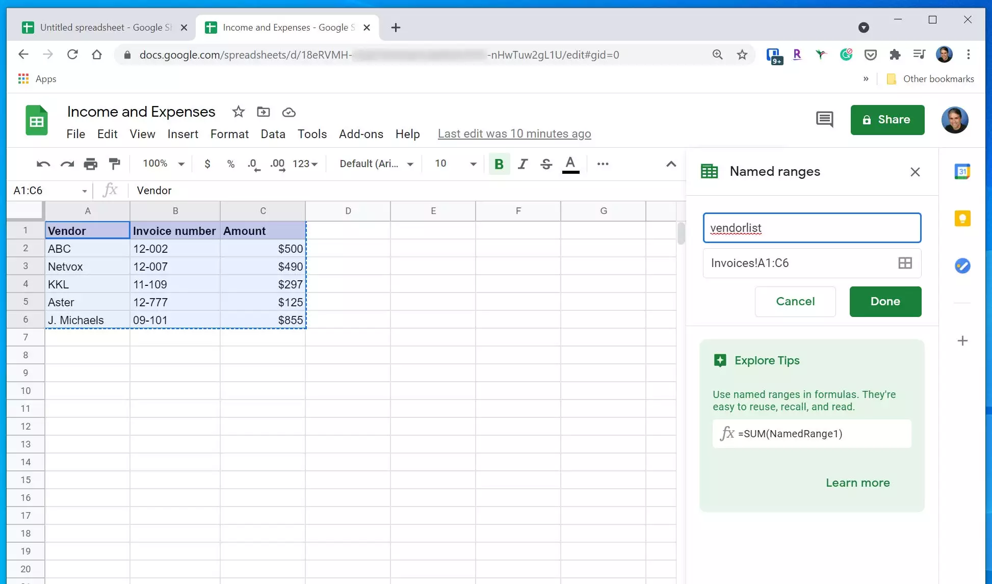 如何在命名范围内使用IMPORTRANGE函数