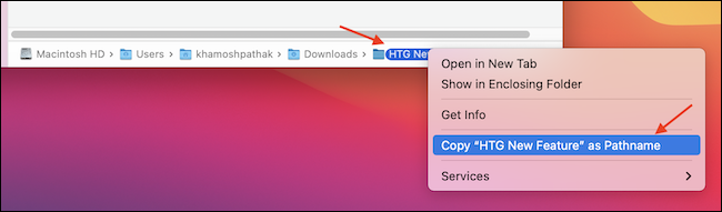 另外,您可以右键单击路径栏中的任何文件夹以查看选项列表。例如,如果要复制所选文件夹的路径,请选择“复制(文件夹)作为路径名”选项。