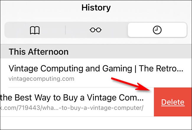 哦,还有另一件事才行:在Safari的“历史记录”列表中,您还可以通过用手指向左滑动单个条目来删除单个条目。当右侧出现红色的“删除”按钮时,请点击它。