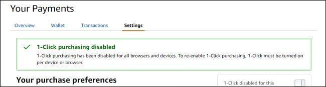 点击后,您会看到一条确认消息,告诉您所有浏览器和设备均已禁用“一键式购买”。