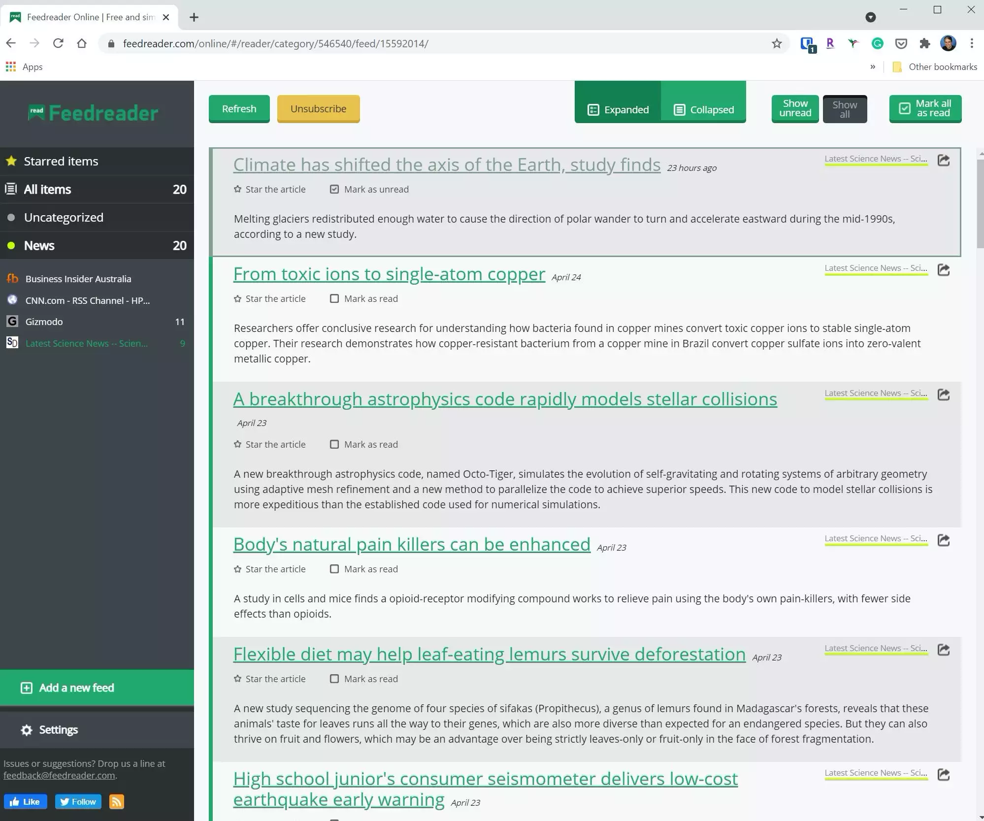 RSS 阅读器是一个很好的工具,可以确保您看到来自多个来源的广泛新闻。