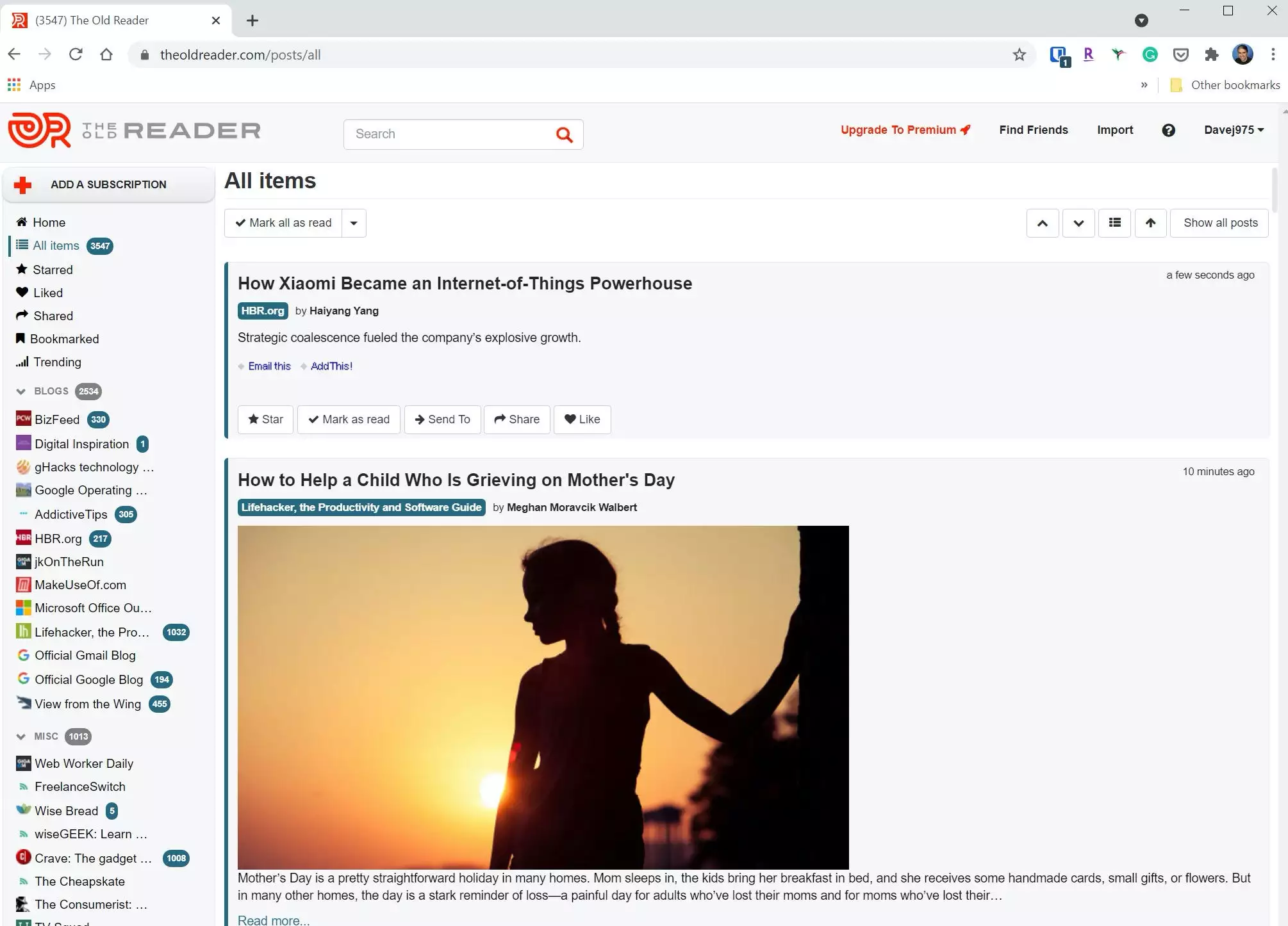 许多 RSS 阅读器可以显示一个单一的统一视图,该视图将您订阅的所有网站的内容按时间顺序汇总 – 有点像统一收件箱一次显示来自多个帐户的电子邮件的方式 – 或者您可以单独浏览每个网站。