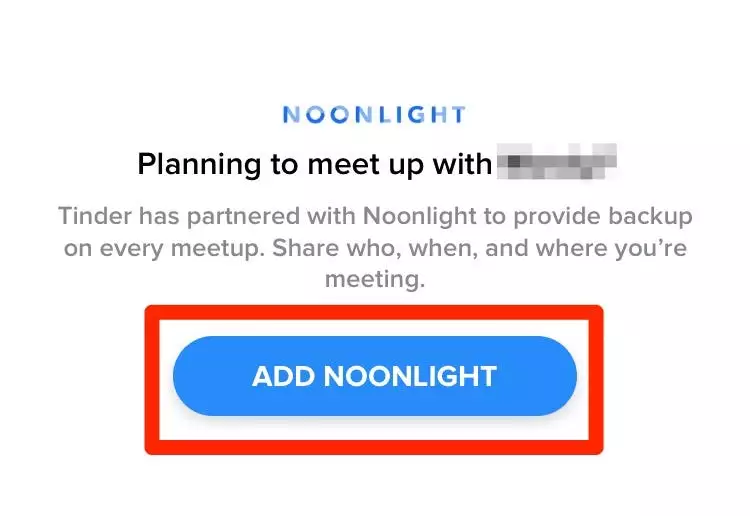 选择 Tinder 消息屏幕底部的蓝色 Noonlight 环图标。 - 选择“添加中午”。