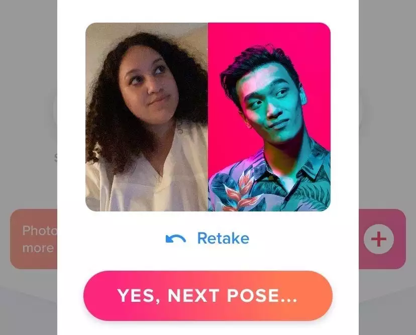 在您的个人资料页面上找到并点按灰色复选标记。 - 系统会提示您模仿 Tinder 提供的姿势。