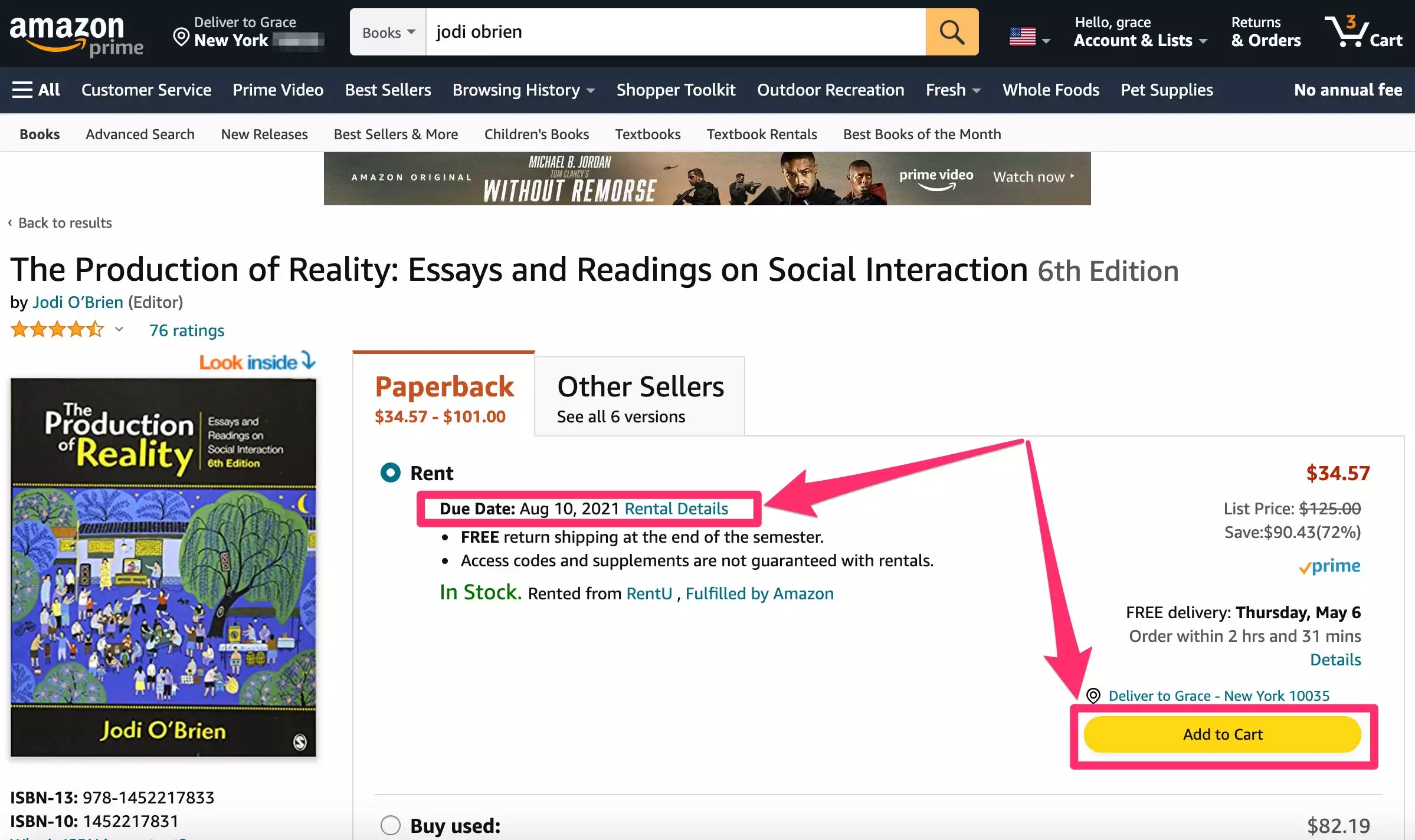 4.请务必记下租赁的到期日,然后单击“添加到购物车”。
