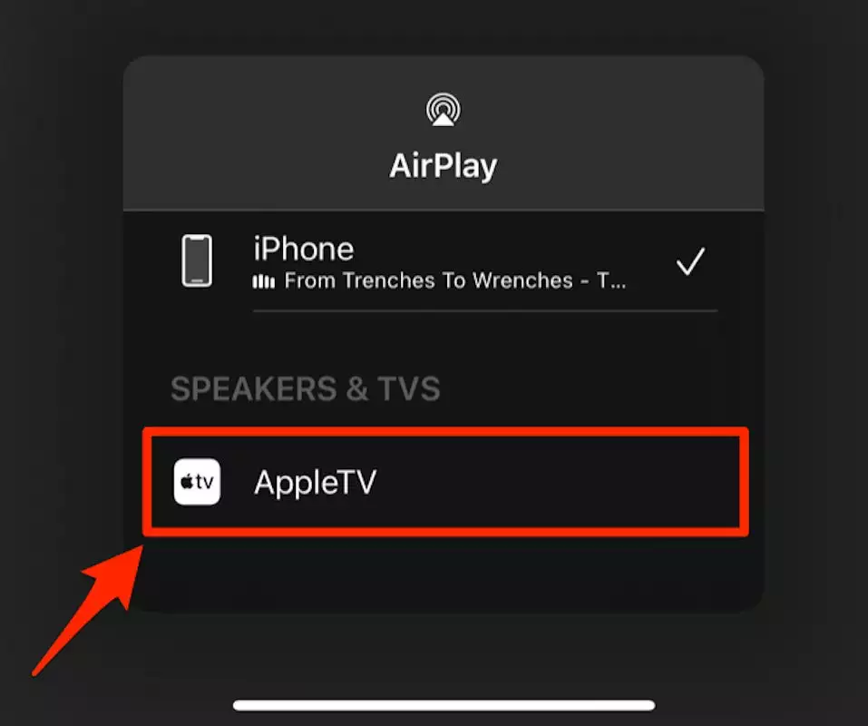 3.点击 AirPlay 图标并从设备列表中选择您的 Apple TV。