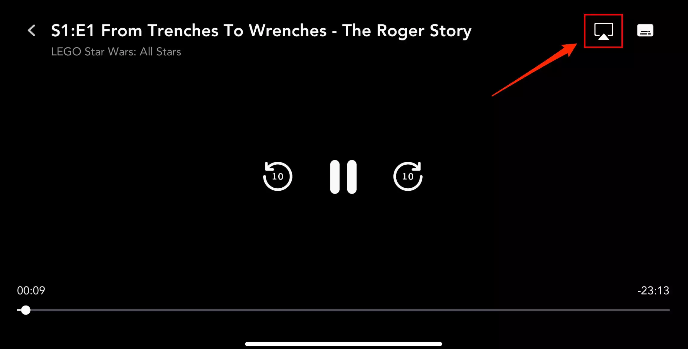 2.找到要隔空播放的内容,在播放时点击视频。如果它可以 AirPlay 到您的 Apple TV,您将在内容的右上角看到 AirPlay 图标。