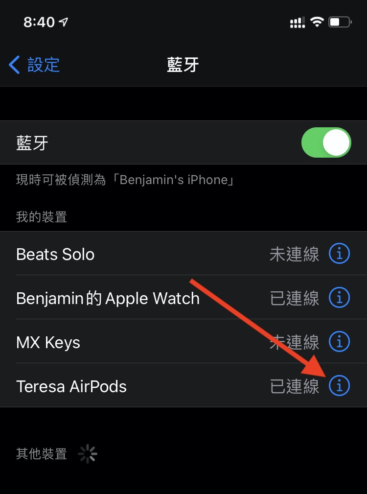 1.进入iPhone的“设定”选“蓝牙”再点选你的AirPods的“ i”。