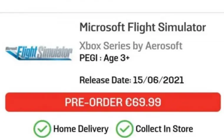 现在看来,该公司准备兑现这一承诺。一个泄漏来自爱尔兰Gamestop的在线商店显示为Xbox游戏机上市的微软模拟飞行。零售商删除了该页面,但人们已经截取了屏幕截图。