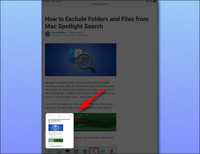 之后,您将截取屏幕截图,就像按下 iPad 上的屏幕截图按钮组合一样。
