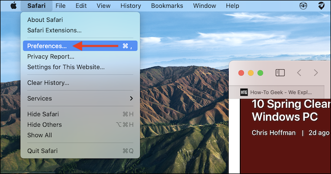 首先,在 Mac 上打开 Safari 浏览器。单击顶部菜单栏中的“Safari”,然后从下拉菜单中选择“首选项”。