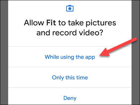 由于这会使用相机,因此您需要允许 Google 健身拍照和录制视频。允许它继续。
