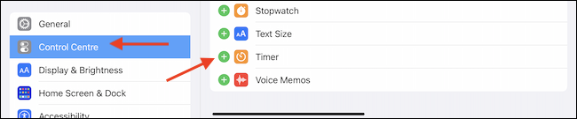 在设置中,点击“控制中心”,然后向下滚动并点击“定时器”选项旁边的加号按钮(“+”)。这会将计时器按钮添加到控制中心的底部。
