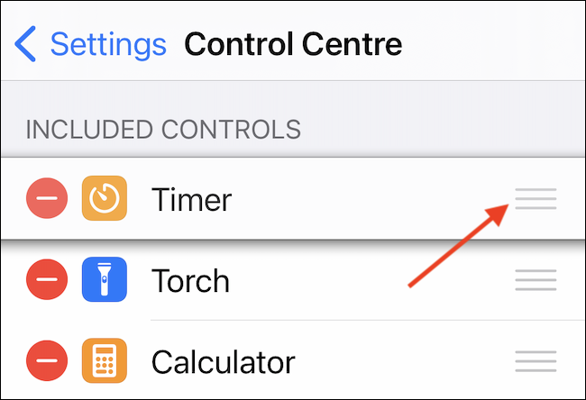 要更改控制中心图标的顺序,请点击并拖动旁边的菜单图标(三行图标)。