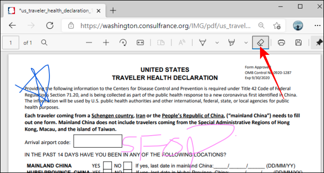 按住鼠标左键开始在 PDF 中的任意位置添加注释。如果要删除笔划或一些涂鸦,请单击 PDF 工具栏中的橡皮擦按钮。