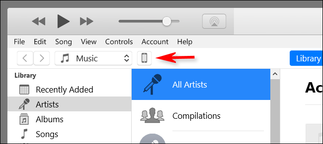 在 PC 或较旧的 macOS 安装上,打开 iTunes 并单击工具栏中的小“iPhone”图标。