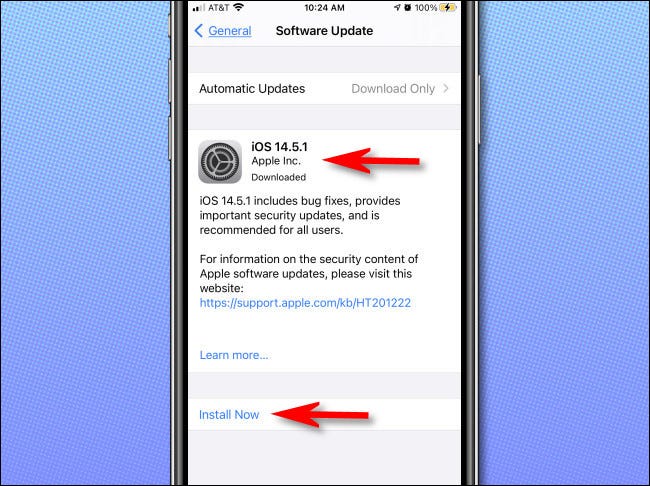 如果您想安装更新,最好先将iPhone 连接到充电器并执行备份。准备好后,点击“下载并安装”或“立即安装”,然后按照屏幕上的说明进行操作。