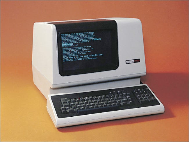 虽然流行了一段时间,但电传打字机作为计算机终端确实有一些明显的缺点。由于冲击打印头的机械作用迅速撞击纸张,它们非常嘈杂。它们也很慢,通常限制在每秒 10 个字符左右。最后,您必须使用大量纸张。