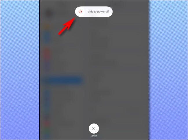 当您在屏幕上看到“滑动以关闭电源”滑块时,将手指放在白色圆圈上并向右滑动手指。