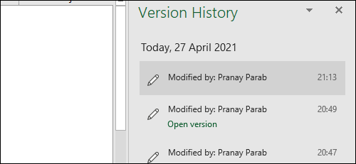 这两种方法将提供相同的最终结果——Excel 将打开一个版本历史记录窗格,该窗格将出现在右侧。在这里,您将看到工作簿的多个保存版本,以及日期和时间戳。