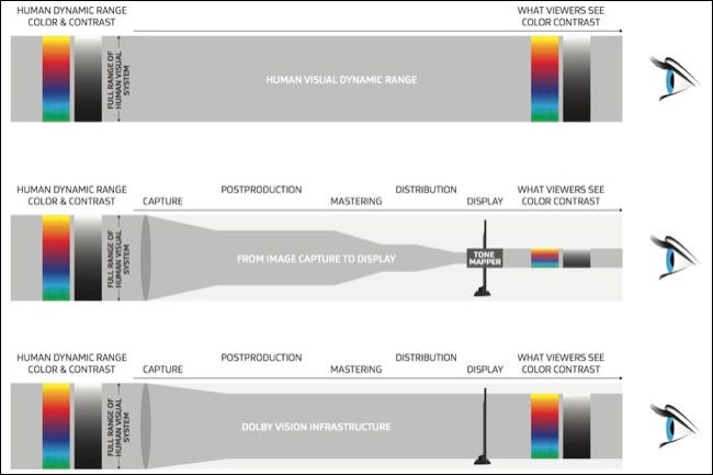 HDR 容器中包含的元数据告诉电视如何渲染图像,包括获得的亮度。使用 HDR10,峰值亮度被定义为整个演示文稿的静态最大值。杜比视界通过动态元数据改进了这一点,在每帧或每场景的基础上定义峰值亮度。这使内容创建者可以更好地控制屏幕上显示的图像。