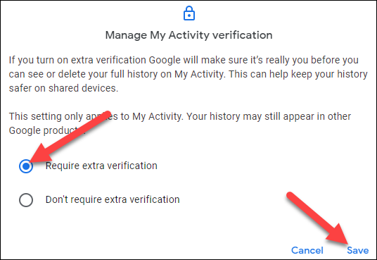 将出现一个带有两个选项的弹出消息。选择“需要额外验证”,然后单击“保存”。