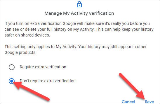 要禁用此功能,只需返回“管理我的活动验证”设置页面,选择“不需要额外验证”,然后单击“保存”。默认情况下未启用此功能,因此如果您之前启用了它,则只需将其关闭。