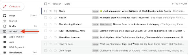 您可以使用 Gmail 中的“所有邮件”标签或文件夹执行此操作。您可以在 Web 客户端和移动应用程序中找到它。