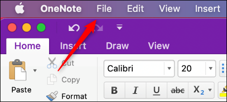 首先,打开 OneNote 应用程序,然后加载包含要转换为 PDF 的页面的笔记本。接下来,单击菜单栏中的“文件”。