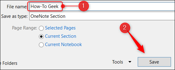 接下来,从“1”中选择要导出的笔记本的哪一部分。导出当前”组。您可以在当前工作的“页面”、“部分”或“笔记本”之间进行选择。