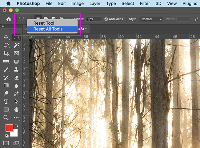 如果您的所有工具继续出现异常行为,您可以使用核选项并将 Photoshop 重置为其默认设置。