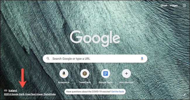 如果您真的很喜欢其中一张背景图片,您可以在新标签页的左下角看到当前背景创建者的名称及其来源。