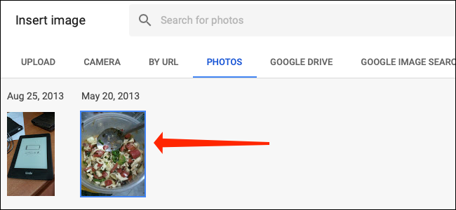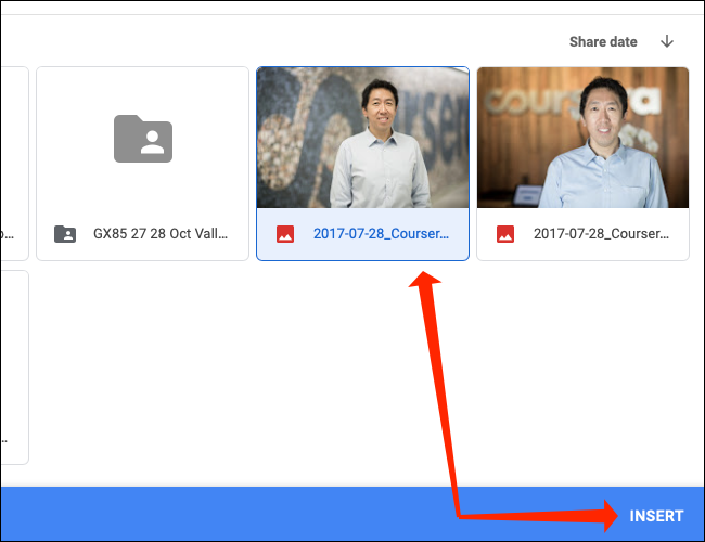 完成后,单击任何照片以选择它,然后点击“插入”将其添加到所选单元格。