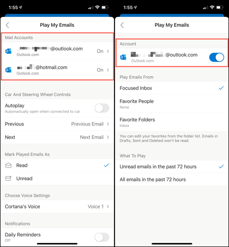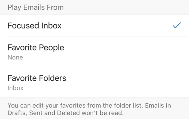在播放电子邮件下,选择您想听到的消息。您可以选择重点收件箱、最喜欢的人或最喜欢的文件夹。