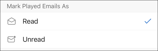 接下来,您可以让播放的电子邮件在收件箱中显示为已读或未读。例如,如果您稍后仍想再次实际阅读消息,这将非常方便。您可以在此处选择未读设置,以免错过电子邮件。