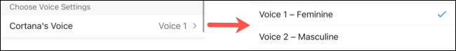 对 Cortana 的声音有偏好吗?点击“Cortana 的声音”以选择男性或女性的声音。