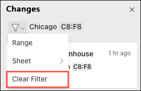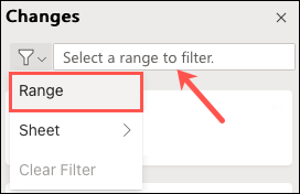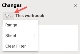 Show Changes 的一个很棒的功能是您可以过滤您看到的编辑。这在大型工作簿中非常理想,您可以在侧边栏中看到许多更改。您可以按工作表或单元格范围进行过滤。
