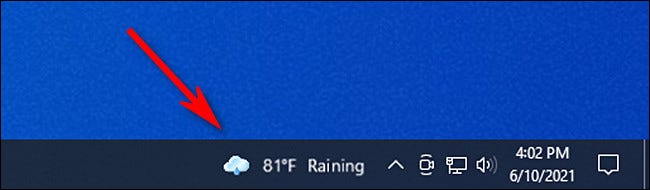 默认情况下,小部件将在任务栏中显示您所在位置的当前温度和非常简短的天气预报。要完全打开小部件,请将鼠标光标悬停在它上面(或单击它)。