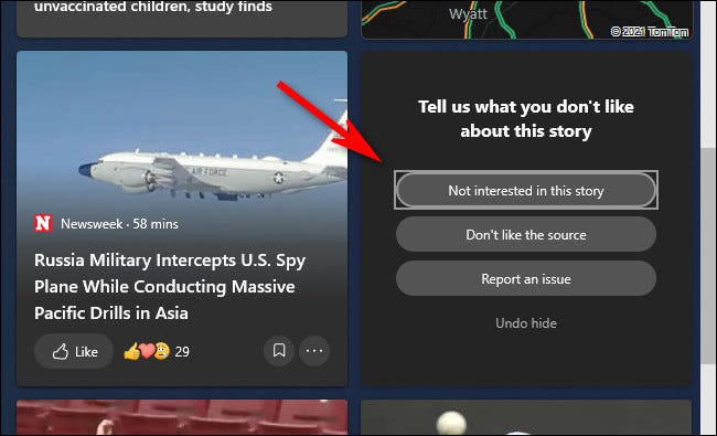 如果您特别不想看到某个小部件卡片,请打开“新闻”小部件并单击您想隐藏的面板右上角的菜单按钮(一个圆圈中的三个点)。