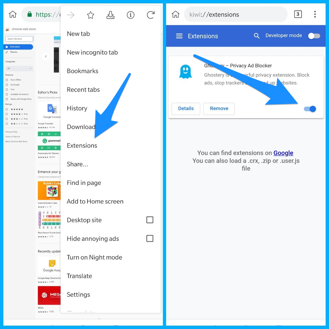 5.该扩展已添加到您的Kiwi浏览器,Ghostery将完成其工作。