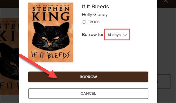 选择您想借书的时间。选项通常为 7 或 14 天。然后,单击“借用”。