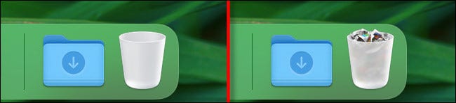 如果在您将项目拖入之前垃圾箱之前是空的,垃圾箱图标本身会发生变化,显示里面有皱巴巴的纸。