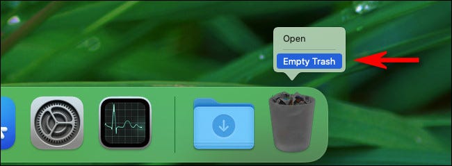 要清空垃圾箱(这将永久删除您放在垃圾箱中的所有文件),请右键单击垃圾箱图标并从出现的菜单中选择“清空垃圾箱”。