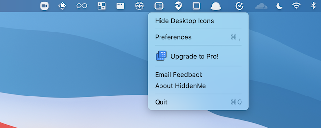 这是一个位于菜单栏中的小型、单一用途的实用程序,只需单击一下,您就可以隐藏桌面图标。