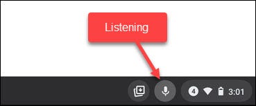 您会立即看到一个麦克风图标出现在架子上的时钟旁边。单击该图标以开始谈论消息。