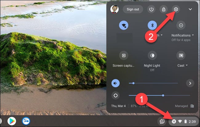 首先,点击时钟打开快速设置菜单,然后选择齿轮图标进入设置菜单。