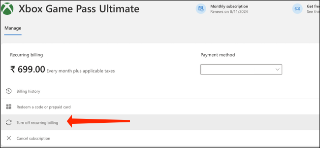 如何从浏览器关闭 Xbox Game Pass 的定期计费