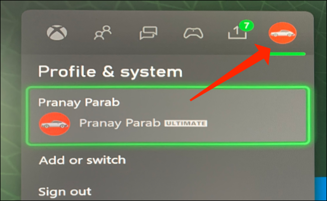 如果在仪表板上找不到设置,请按一下控制器上的 Xbox 按钮以打开侧边栏。在 Xbox 侧边栏中,点击 RB 按钮滚动到最后一个选项卡,称为“配置文件和系统”。