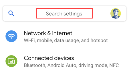 我们正在寻找的是“设置”顶部的搜索栏或某种搜索图标,例如放大镜。这是它在 Google Pixel 上的样子: