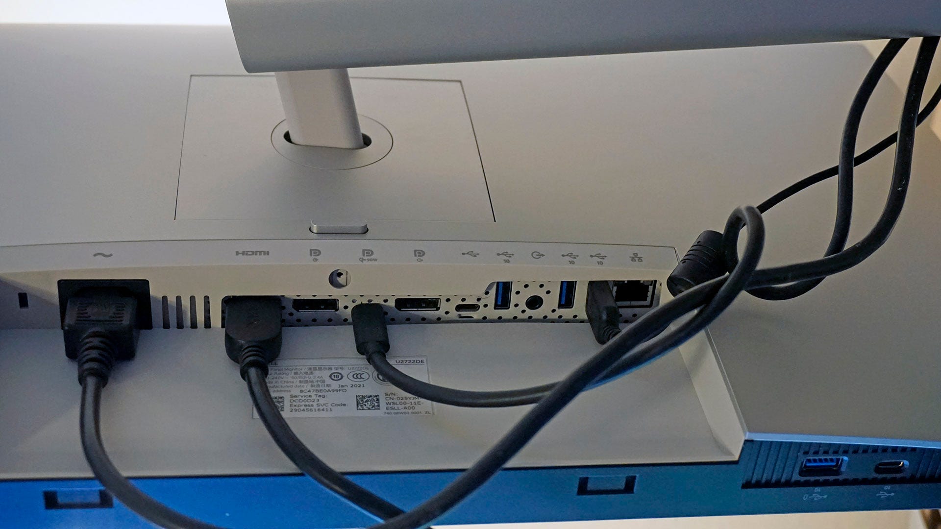 我不喜欢底部安装的 USB-A 和 USB-C 端口,发现不看就很难找到它们,即使我看也很难看到。这些类型的端口在显示器侧面更容易访问,但我可以看到戴尔如何试图使它们在多显示器阵列中更有用。